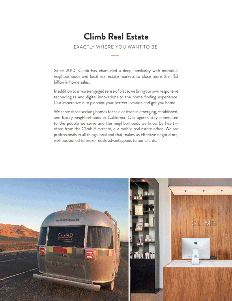 Climb was an innovative full-service residential real estate brokerage that leveraged the latest technology and a premium brand to serve clients in the San Francisco Bay Area.